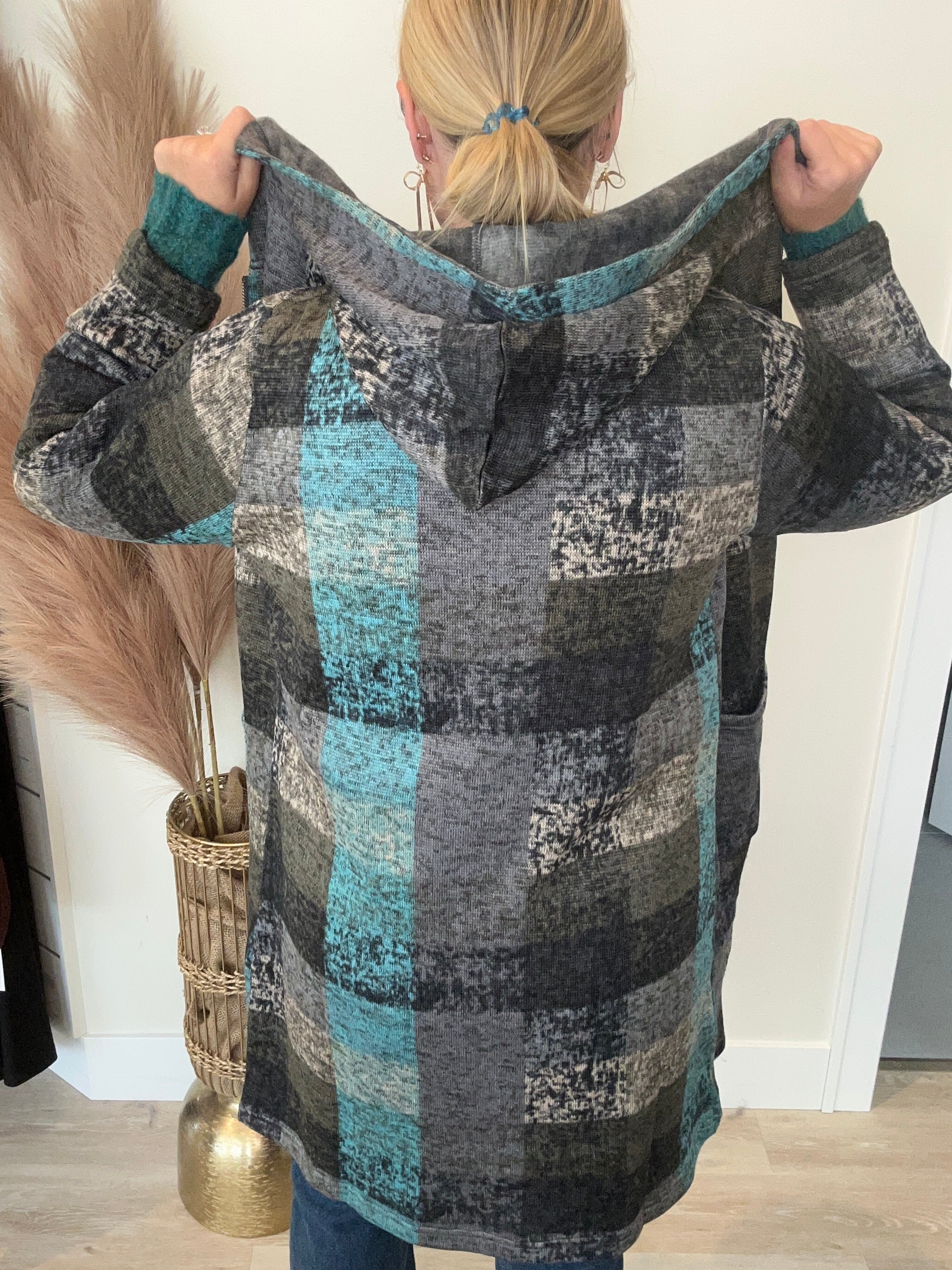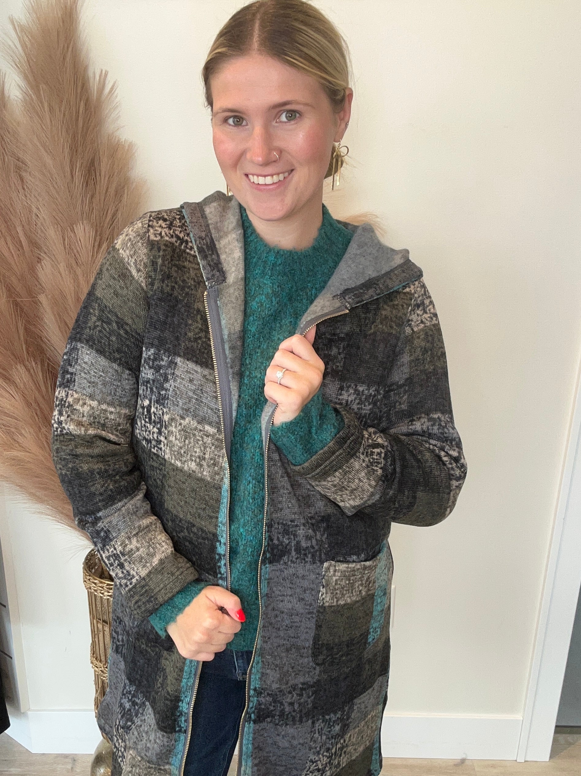 Knit Plaid Zip Jacket