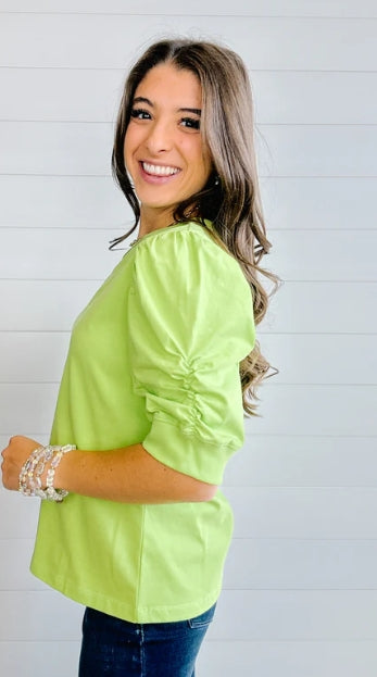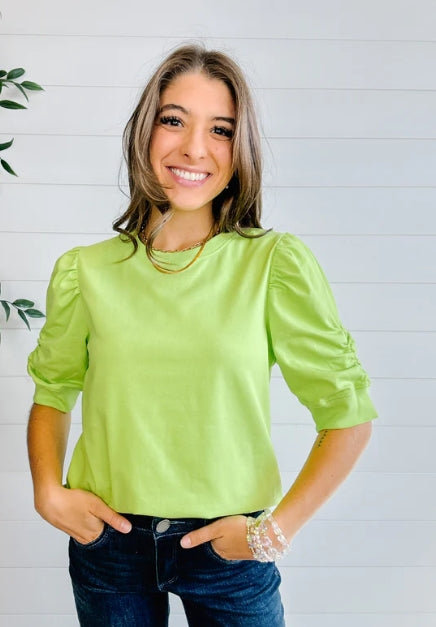 Crew Neck Elbow Sleeve Top