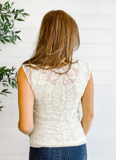 Elevate your everyday wardrobe with this sophisticated Sleeveless Lace Mock Neck Top. Featuring delicate lace detailing and a classic mock neck silhouette, this piece effortlessly transitions from office to weekend. The refined design offers a polished look while maintaining comfort for all-day wear. Perfect for layering or wearing solo, this versatile top pairs beautifully with jeans, skirts, or trousers for endless styling possibilities.