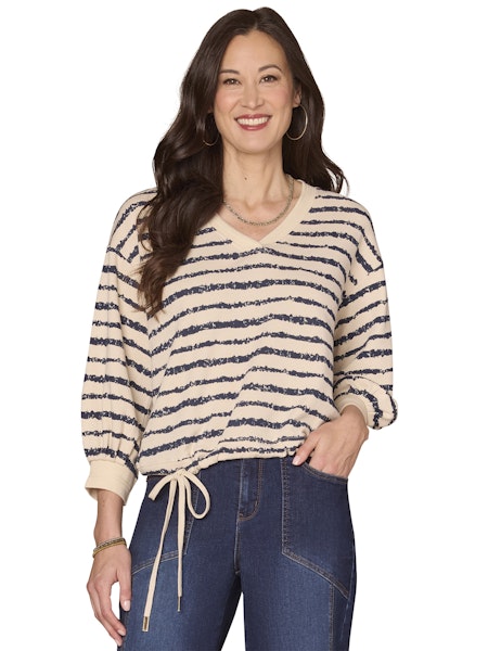 This 3/4 Sleeve Jacquard Band Top combines comfort and style effortlessly. Its textured jacquard fabric adds subtle elegance, while the 3/4 sleeves provide coverage without restricting movement. Perfect for layering or wearing on its own, this top supports your everyday wardrobe with a versatile and flattering fit.