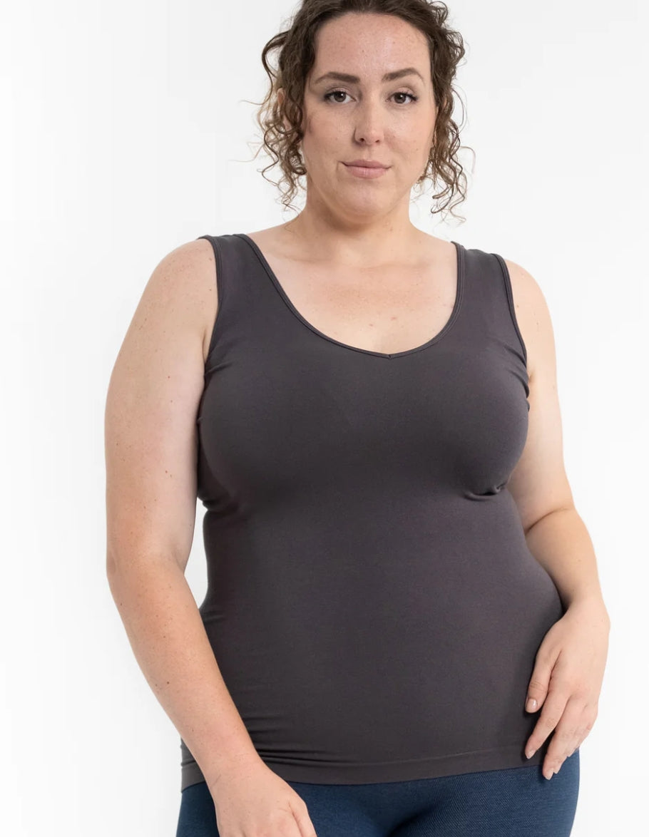 Looking for an everyday basic that'll fit your body like a dream? Look no further than the Reversible Tank! This must-have tank is super stretchy and reversible so you can customize your look with a V-neck or scoped neckline. Plus, it's made of the softest fabric to ensure you look and feel your best, day in and day out.
