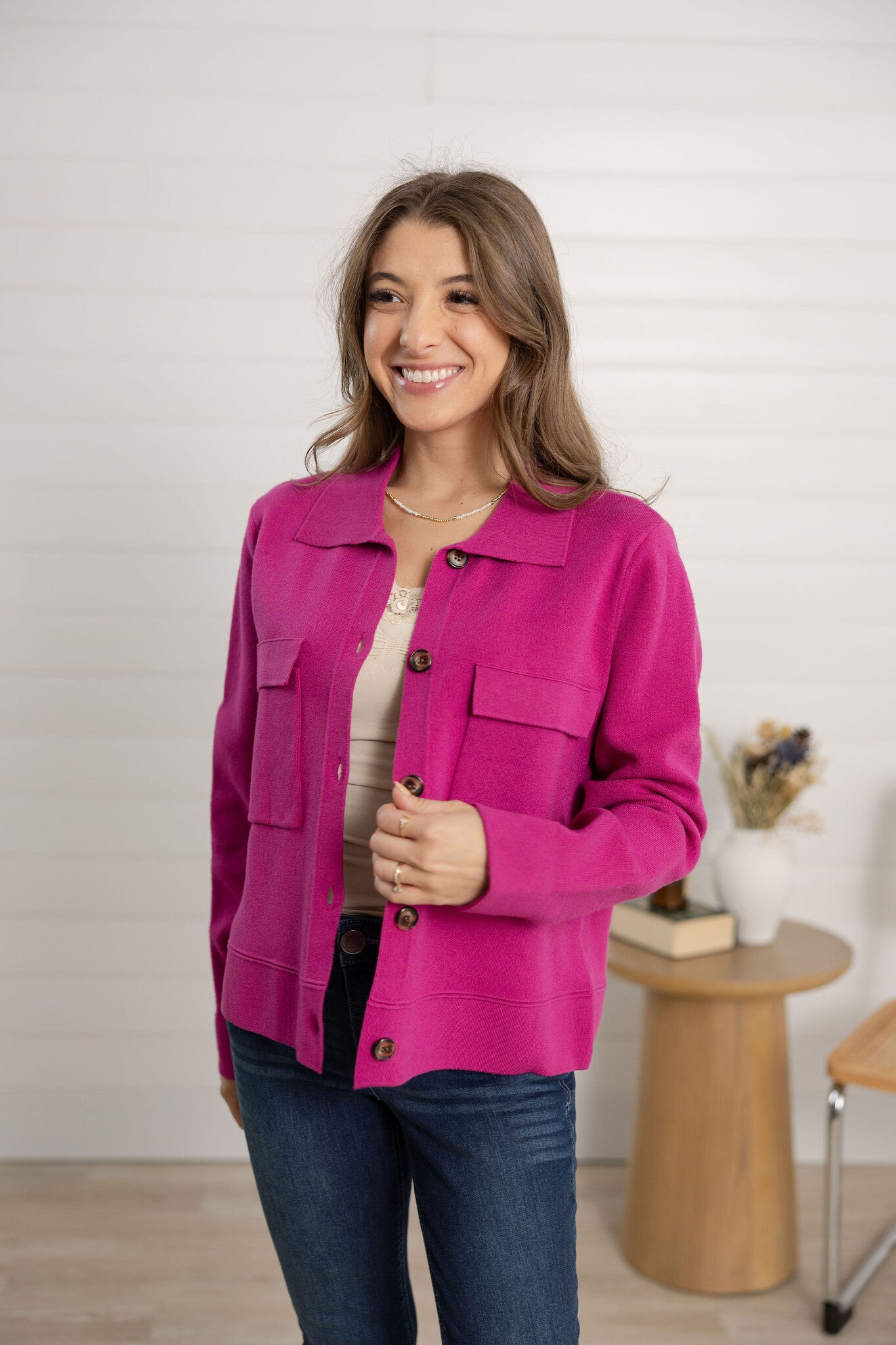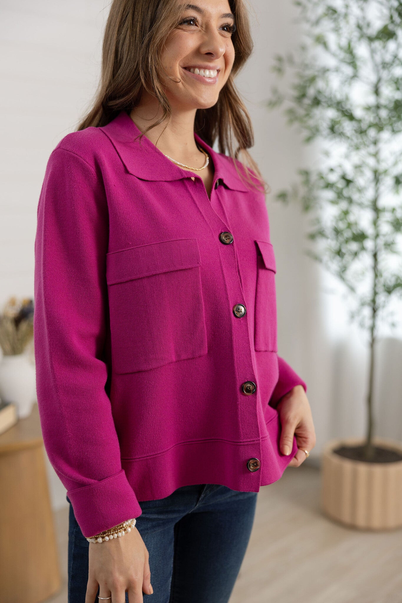 Experience cozy comfort and timeless style with this Double Knit Collared Sweater Cardigan. Its soft, double-knit fabric offers warmth without bulk, while the classic collar adds a refined touch. Perfect for layering, it provides a versatile option to keep you comfortable on cooler days while enhancing your everyday wardrobe.