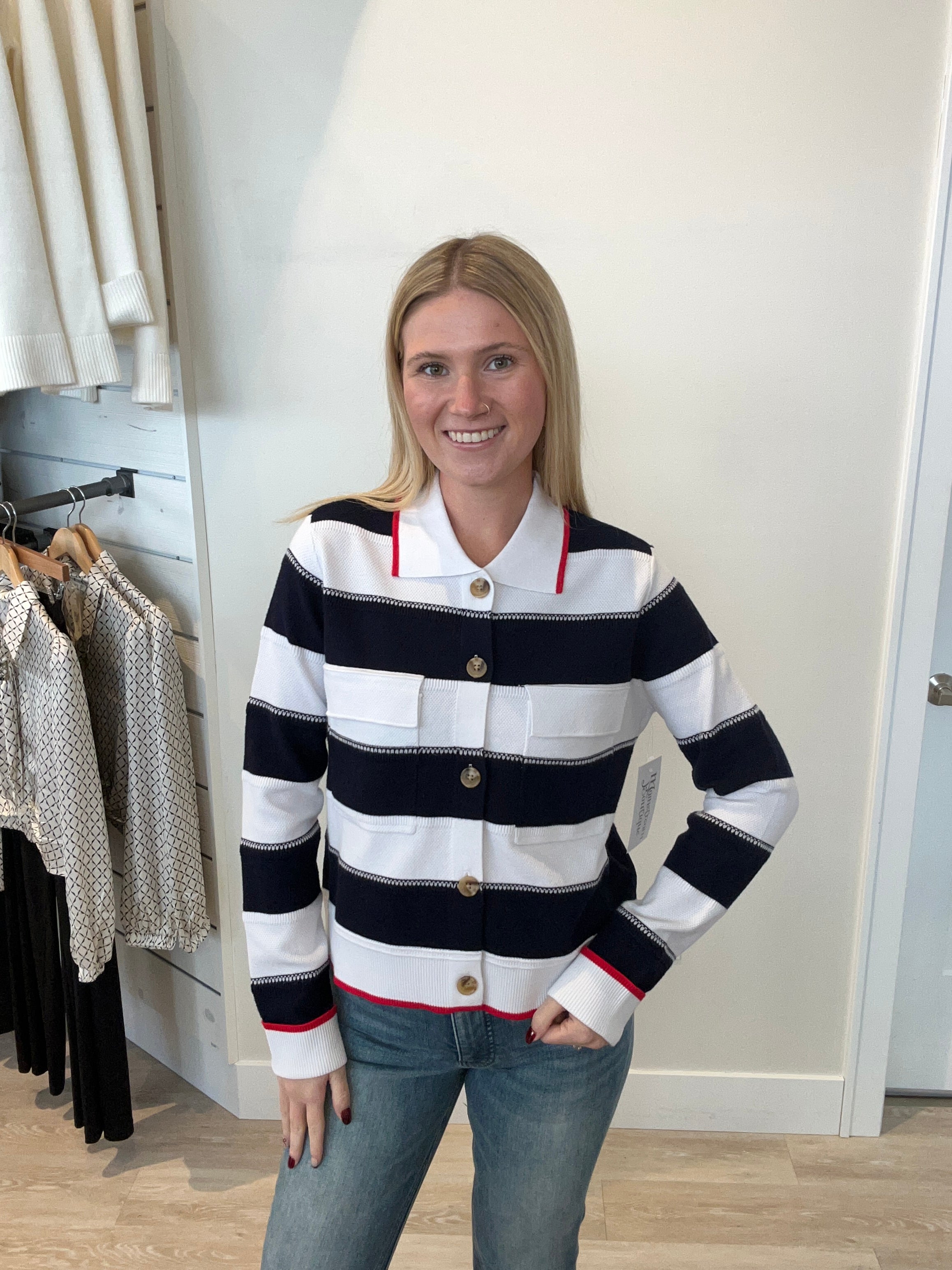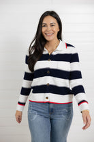 Elevate your everyday wardrobe with this versatile Button Front Stripe Cardigan. Featuring classic stripes and a convenient button-front closure, this piece layers beautifully over your favorite tees and dresses. The relaxed fit offers comfort without compromising style, making it perfect for casual outings or cozy days at home. Whether you're dressing up or down, this cardigan is a timeless addition that works with nearly everything in your closet.