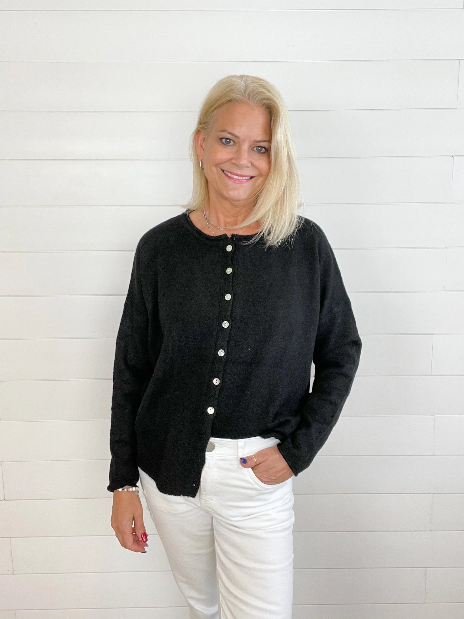 Crewneck Button Down Cardigan