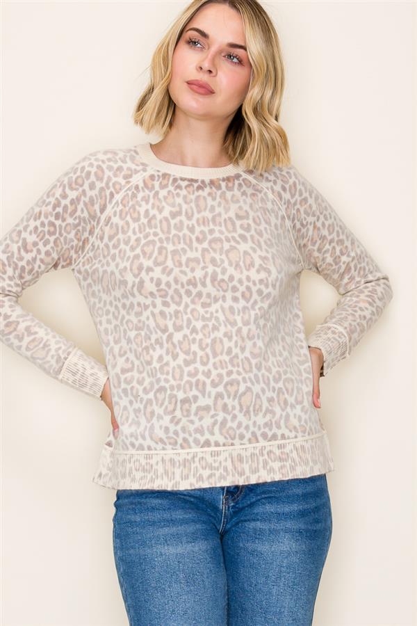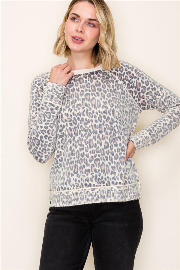This leopard print long sleeve crew neck offers a comfortable and stylish option for everyday wear. The soft fabric gently hugs your body while the bold pattern adds a touch of confidence to your look. Perfect for layering or wearing on its own, it provides both warmth and flair for any casual occasion.