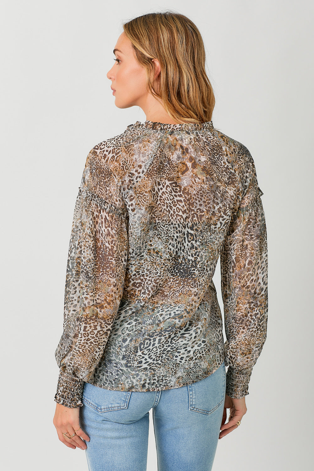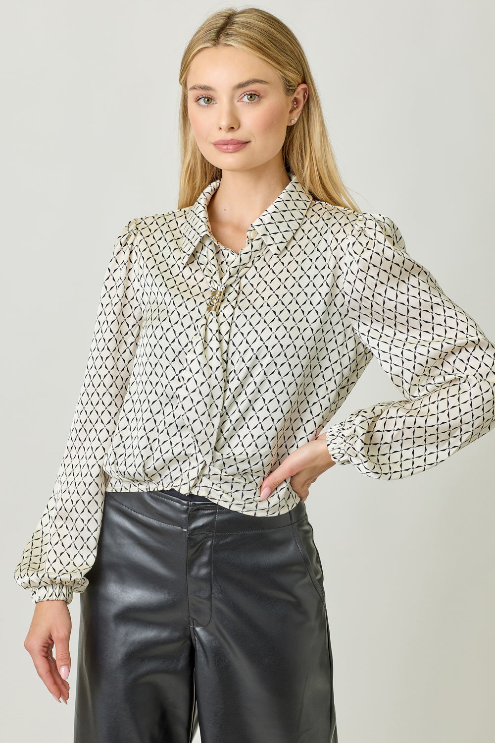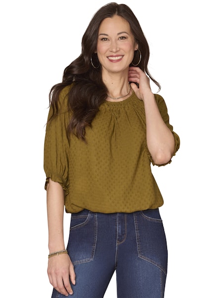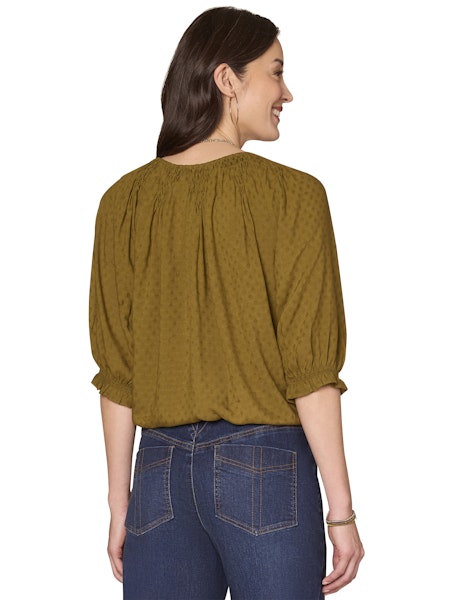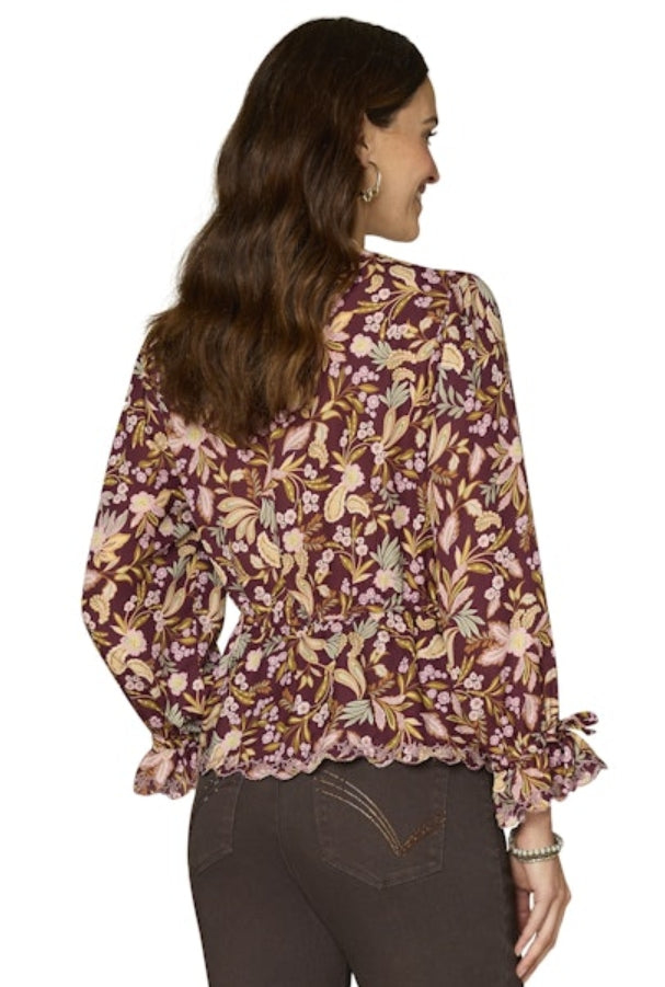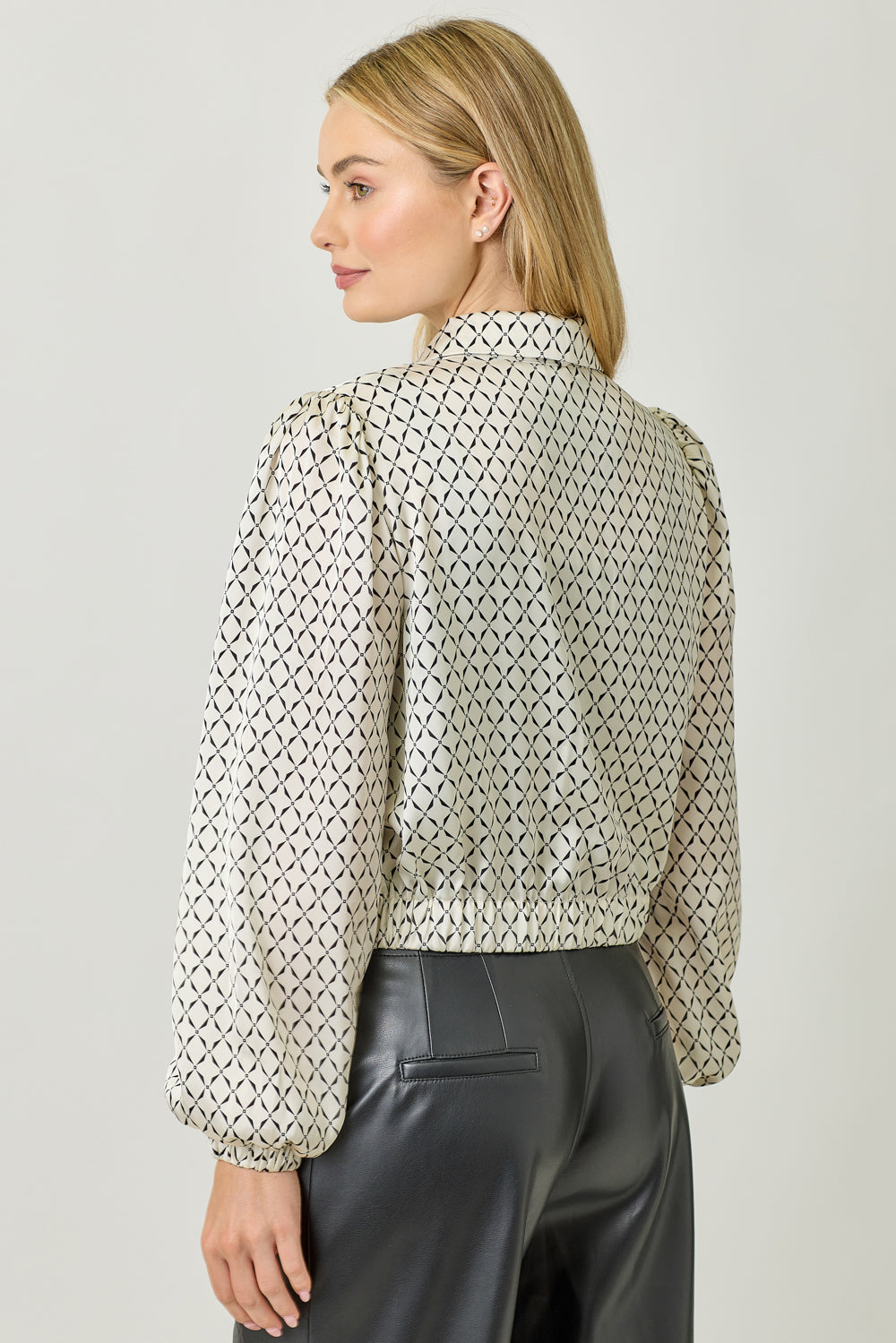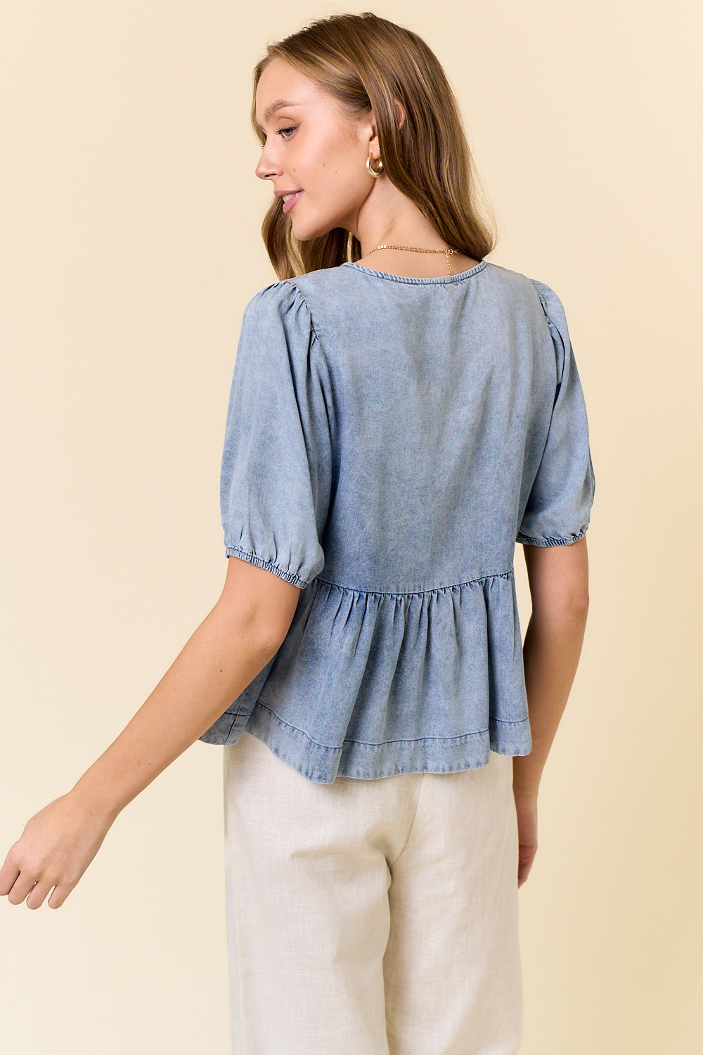 Tencel Chambray Puff S/Slv Bow Tie Peplum Top