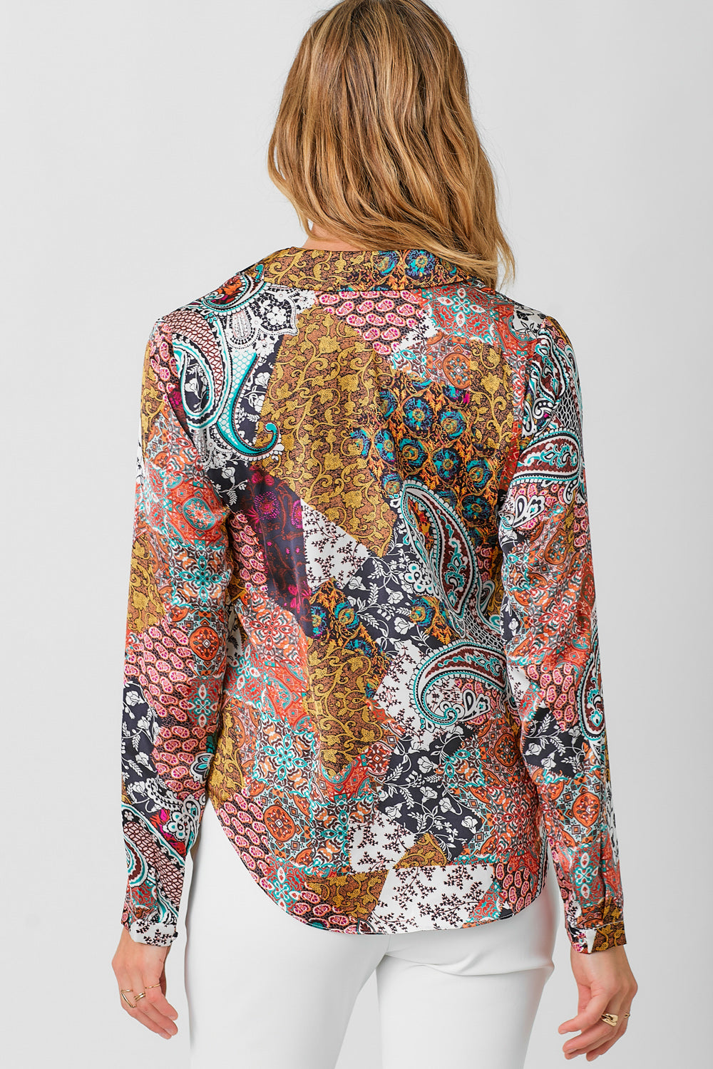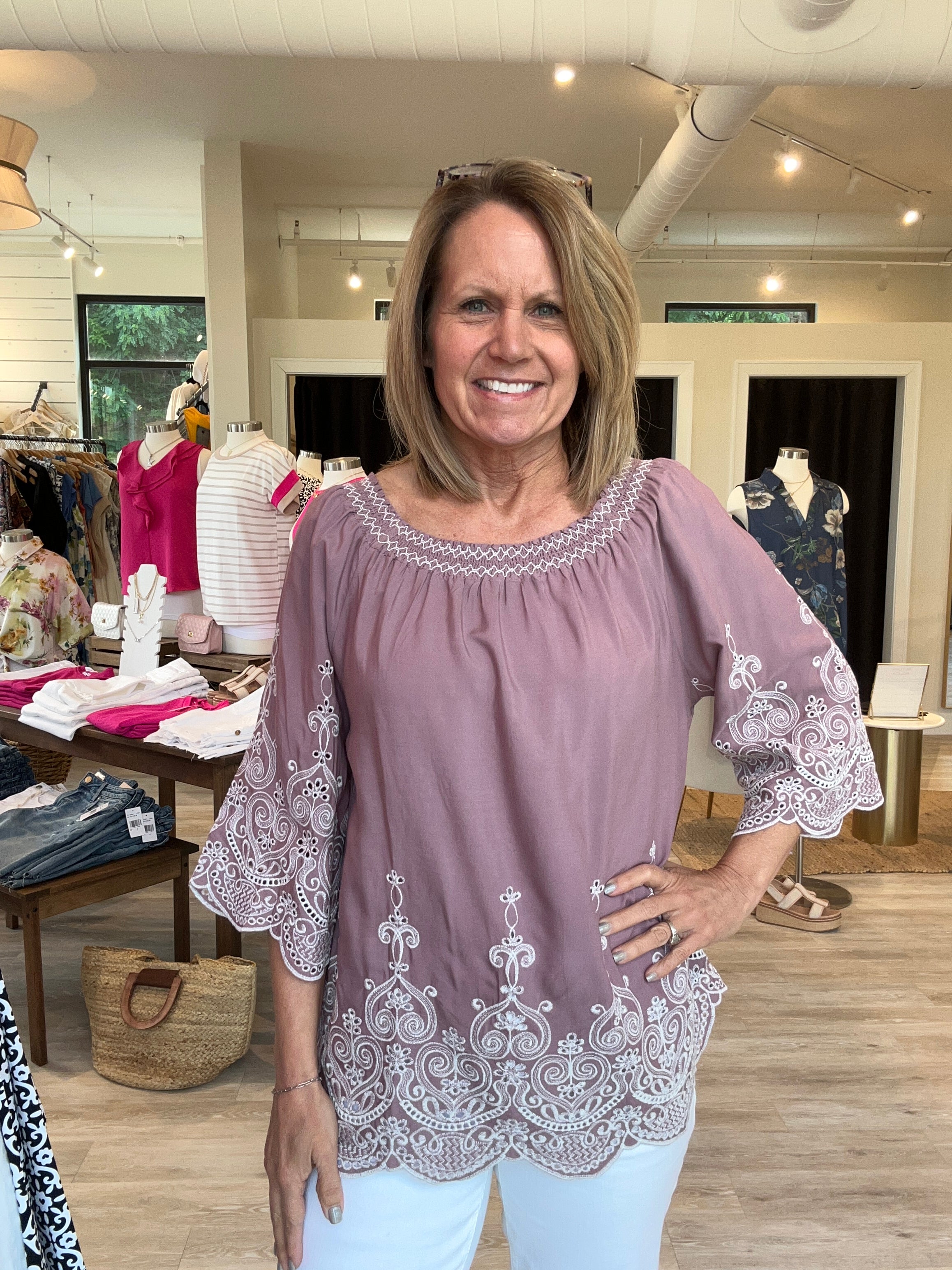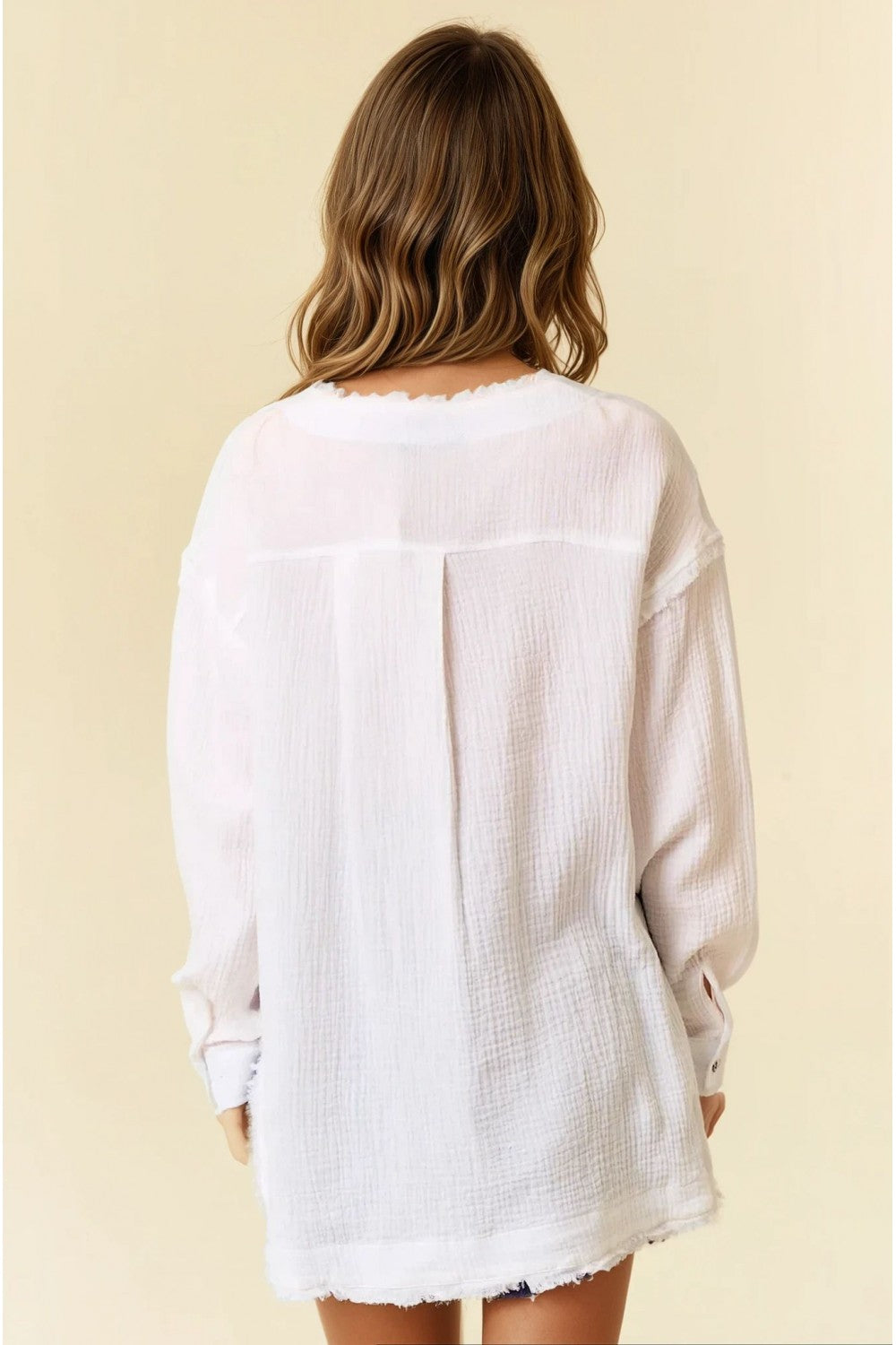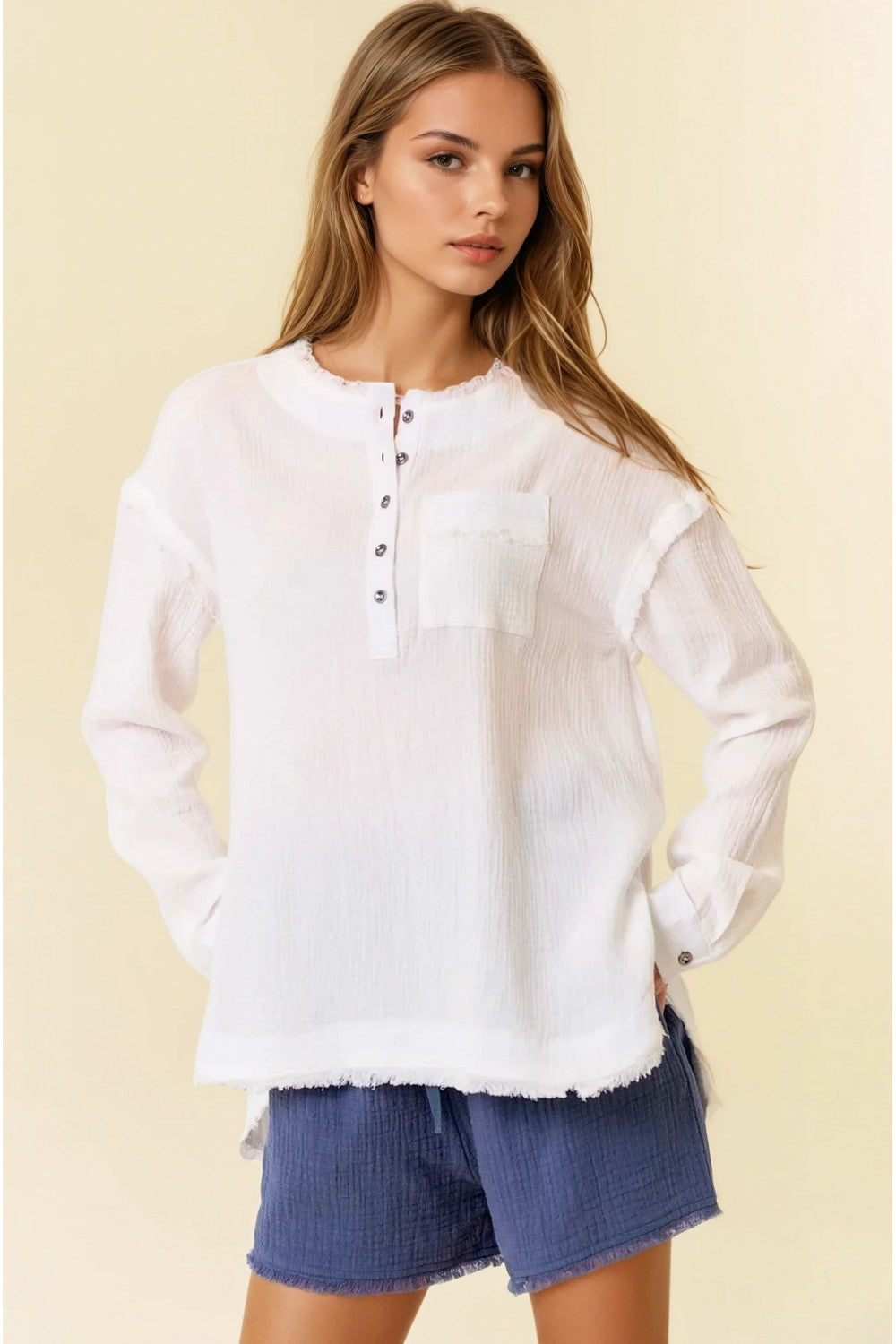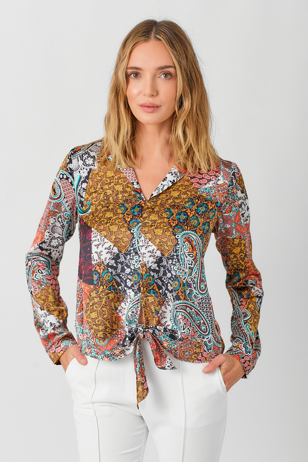 Tencel Chambray Puff S/Slv Bow Tie Peplum Top