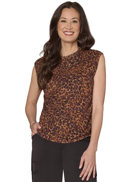 Slvless Shoulder Pleat Boat Neck Knit Top