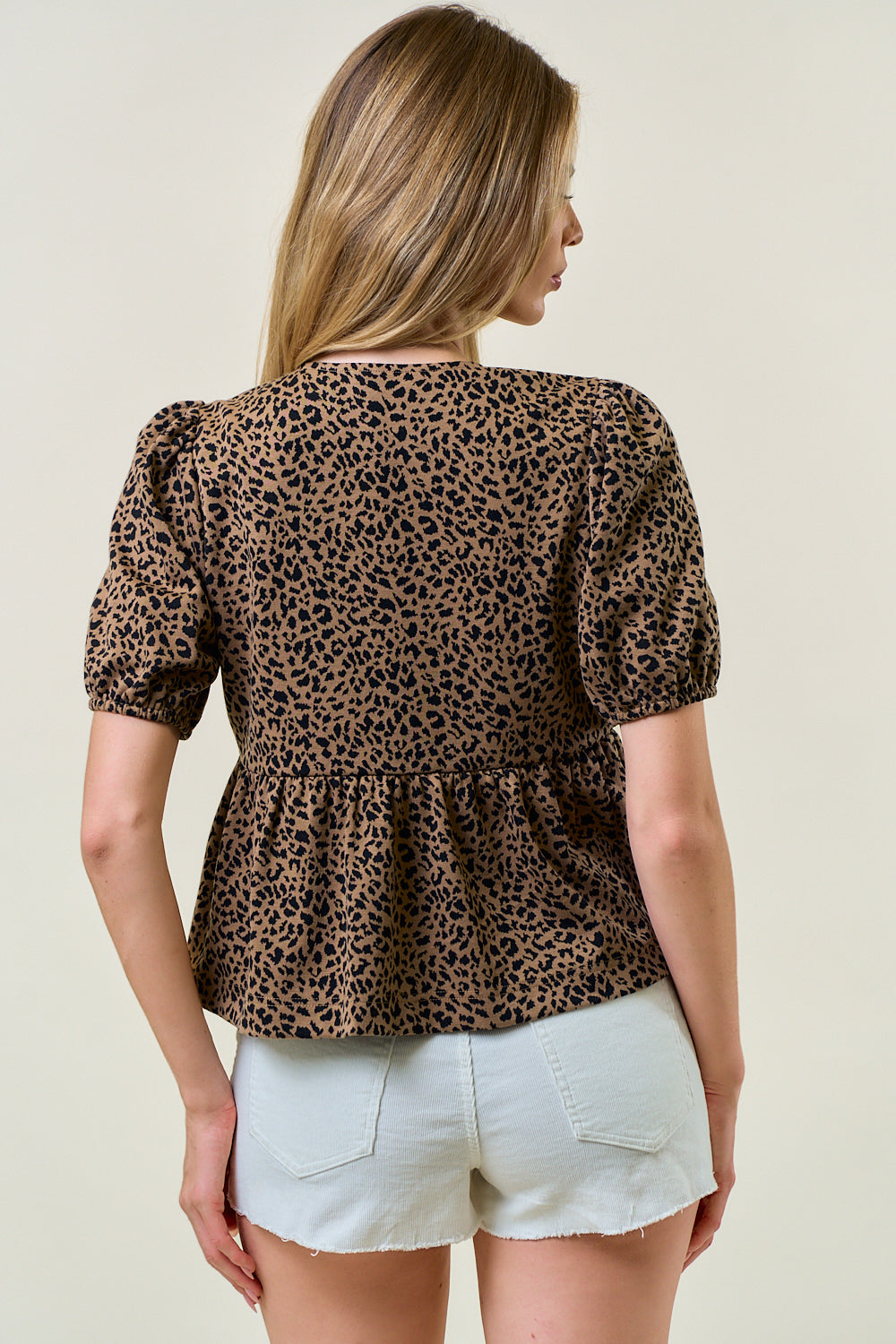 Elevate your wardrobe with the Animal Print Pull-Over Short Sleeve Bow Tie Peplum Top. Its flattering peplum silhouette enhances your shape, while the charming bow tie detail adds a touch of elegance. The short sleeves and lightweight fabric ensure comfort throughout the day, making it perfect for both casual outings and dressier occasions. Embrace style and confidence effortlessly with this versatile top.
