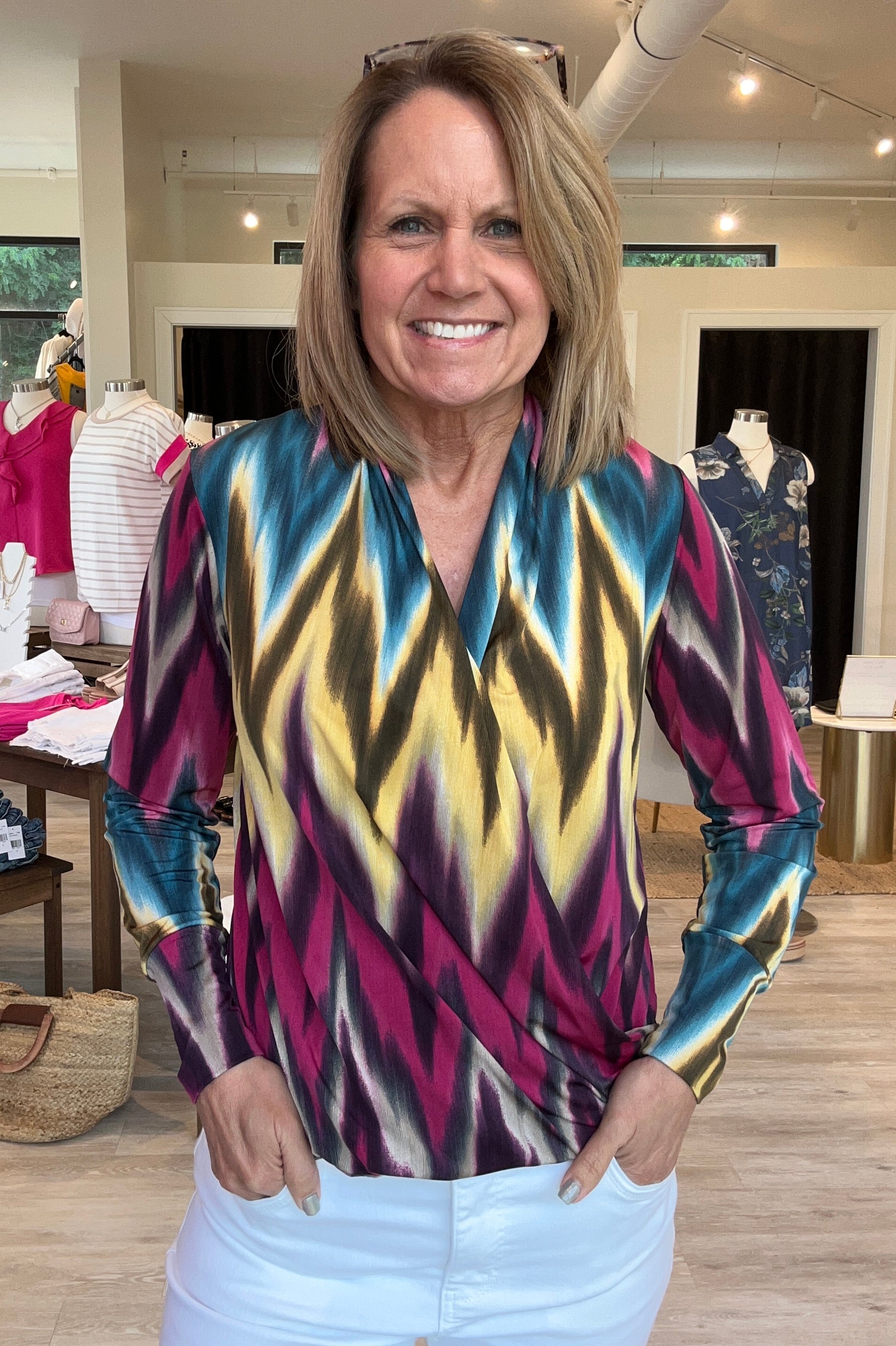 This long-sleeve wrap front blouse offers a flattering fit with its adjustable wrap design, allowing you to customize your look comfortably. Crafted for everyday wear, it combines style and ease, making it a versatile addition to your wardrobe. Perfect for layering or wearing on its own, this blouse supports your confidence and comfort throughout the day.