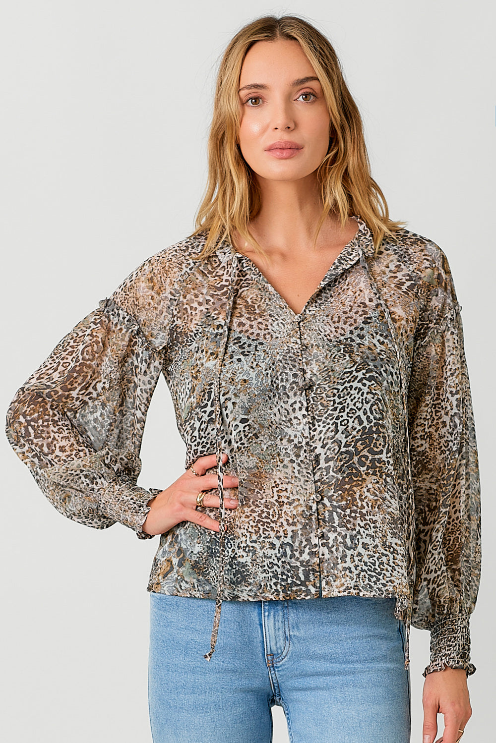 The Leopard Peasant Blouse offers a comfortable and stylish fit perfect for everyday wear. Its relaxed design allows for easy movement, while the subtle leopard pattern adds a touch of boldness to your outfit. Pair it with your favorite jeans or skirt for a versatile look that supports your confidence and comfort throughout the day.