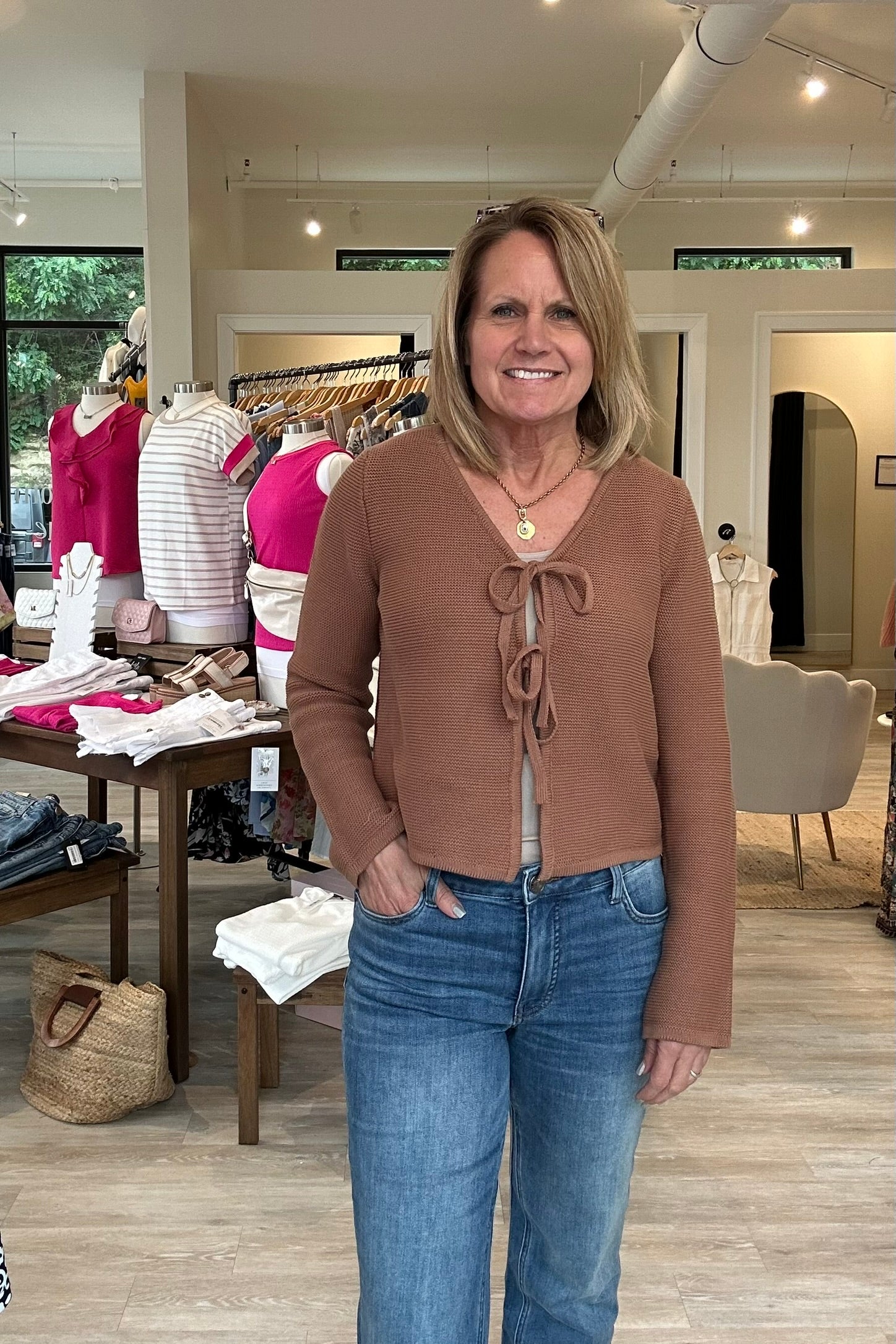 This Tie Front Sweater offers a cozy and stylish way to stay comfortable throughout your day. Its adjustable front tie allows for a personalized fit, enhancing both comfort and look. Perfect for layering, it adds a touch of casual elegance to any outfit while keeping you warm and confident.